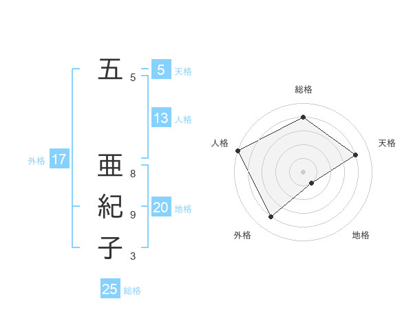 五 亜紀子さんの総格は25画の4点!