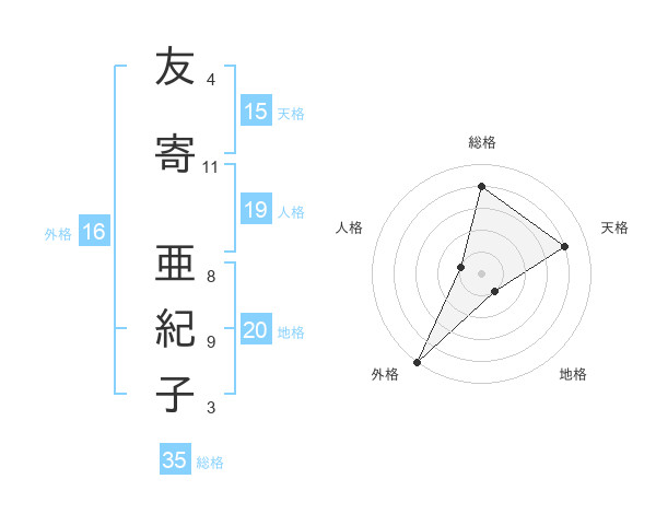 友寄 亜紀子さんを姓名の画数から五運を鑑定