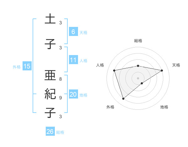 土子 亜紀子さんを姓名の画数から五運を鑑定