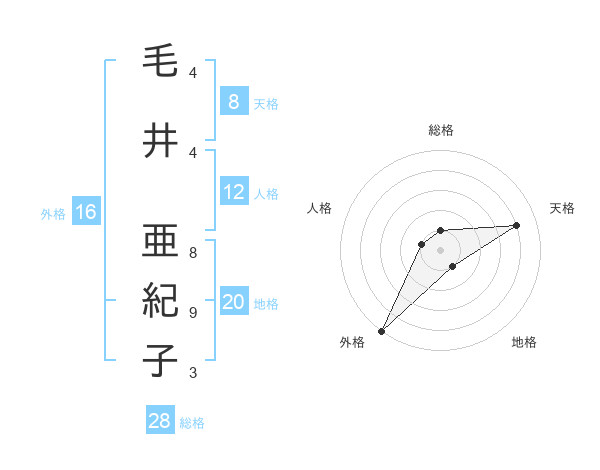 毛井 亜紀子さんを姓名の画数から五運を鑑定