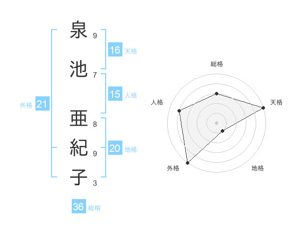 泉池 亜紀子さんの天格は16画の5点!