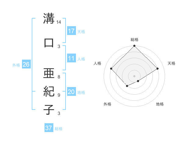 溝口 亜紀子さんの総格は37画の5点!