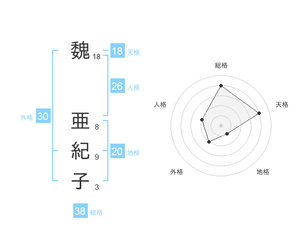魏 亜紀子さんの総格は38画の4点!