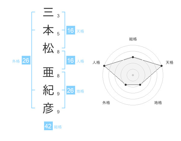 三本松 亜紀彦さんを姓名の画数から五運を鑑定