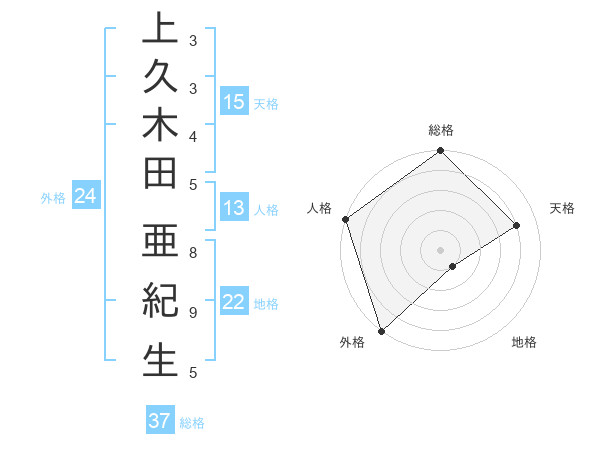 上久木田 亜紀生さんを姓名の画数から五運を鑑定