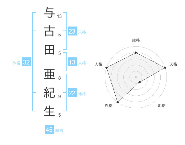 与古田 亜紀生さんを姓名の画数から五運を鑑定