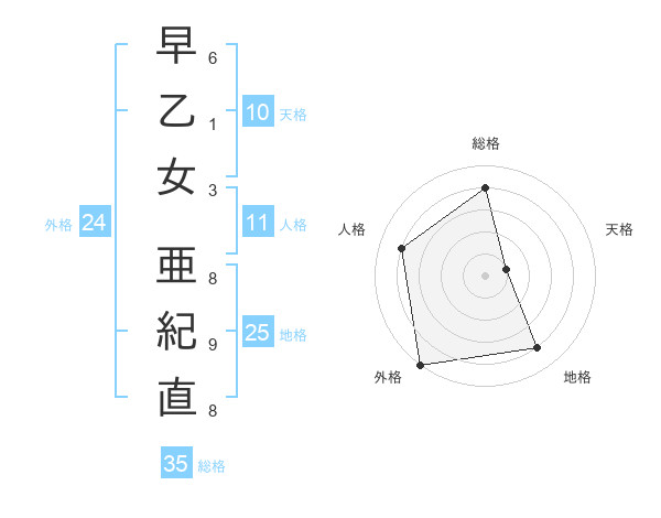 早乙女 亜紀直さんを姓名の画数から五運を鑑定