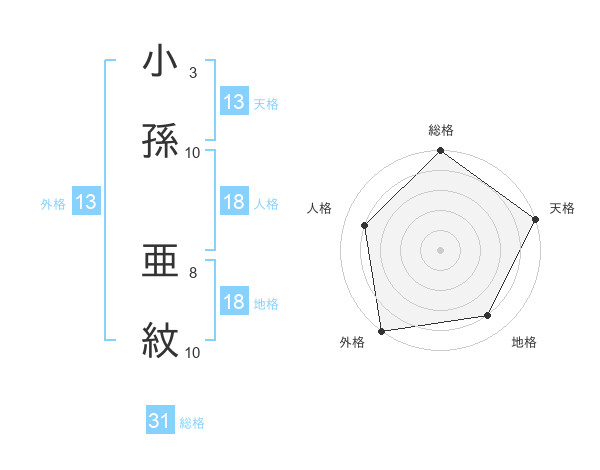 小孫 亜紋さんを姓名の画数から五運を鑑定