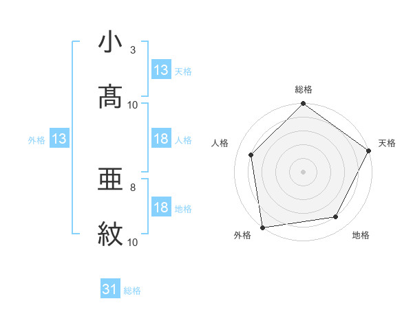 小髙 亜紋さんの天格は13画の5点!