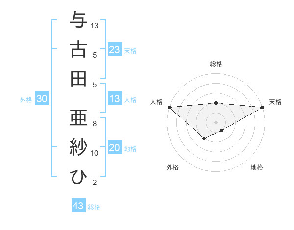 与古田 亜紗ひさんを姓名の画数から五運を鑑定