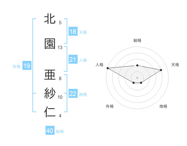 北園 亜紗仁さんを姓名の画数から五運を鑑定