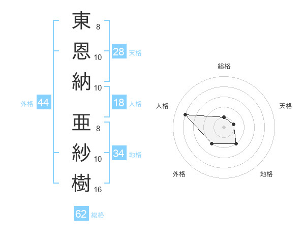 東恩納 亜紗樹さんを姓名の画数から五運を鑑定