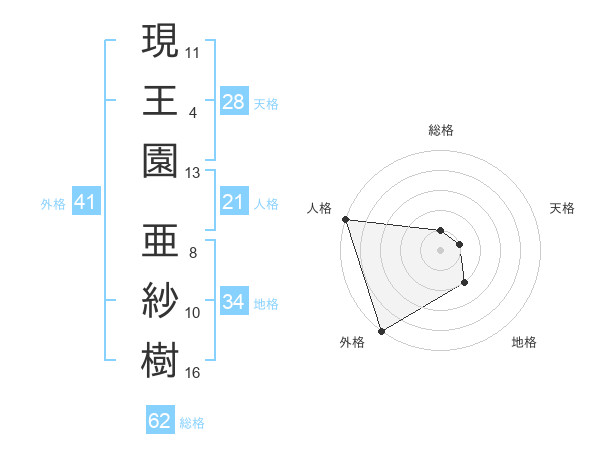現王園 亜紗樹さんを姓名の画数から五運を鑑定