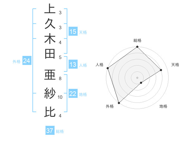 上久木田 亜紗比さんを姓名の画数から五運を鑑定