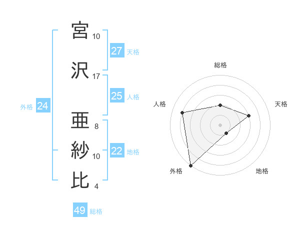 宮沢 亜紗比さんを姓名の画数から五運を鑑定
