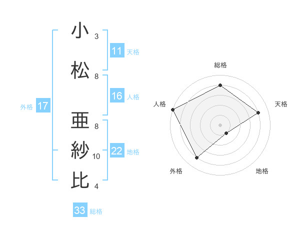 小松 亜紗比さんを姓名の画数から五運を鑑定