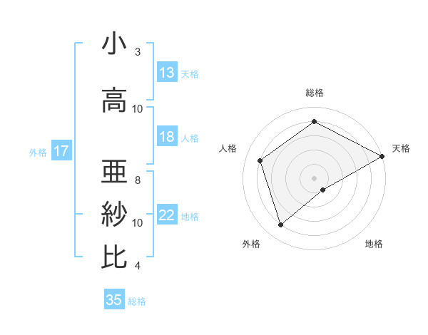 小高 亜紗比さんを姓名の画数から五運を鑑定