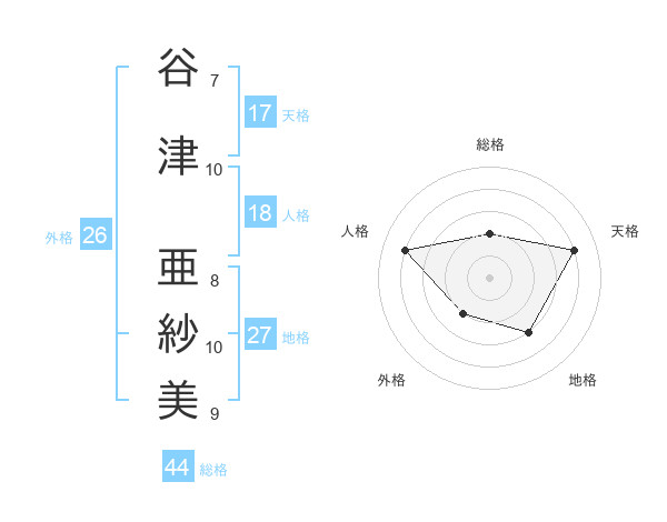 谷津 亜紗美さんを姓名の画数から五運を鑑定