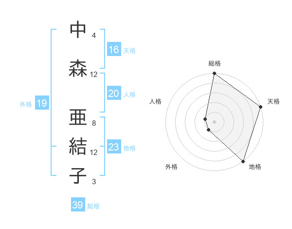 中森 亜結子さんを姓名の画数から五運を鑑定