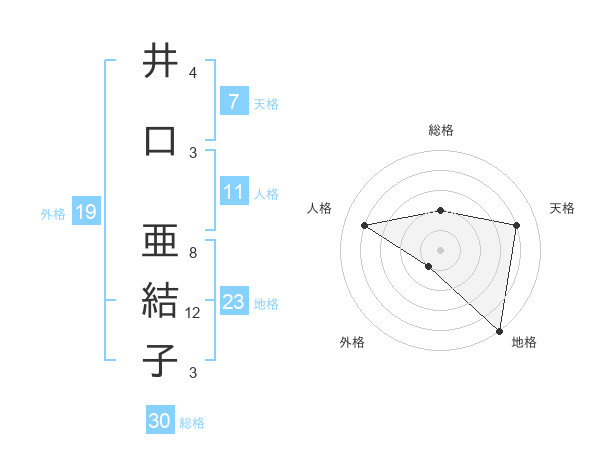 井口 亜結子さんを姓名の画数から五運を鑑定