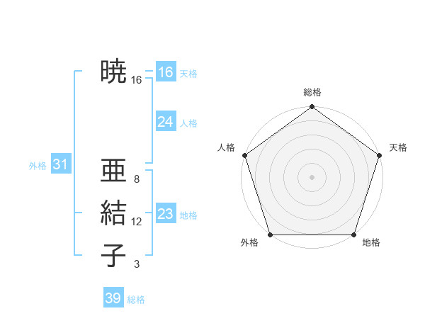 暁 亜結子さんを姓名の画数から五運を鑑定