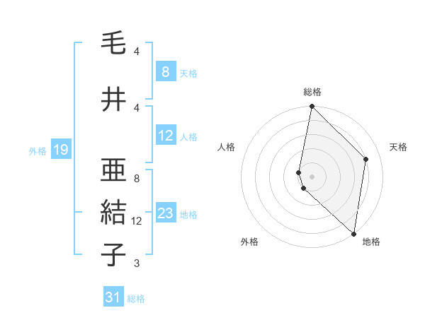 毛井 亜結子さんを姓名の画数から五運を鑑定
