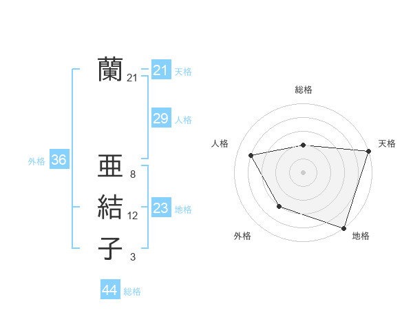 蘭 亜結子さんの天格は21画の5点!
