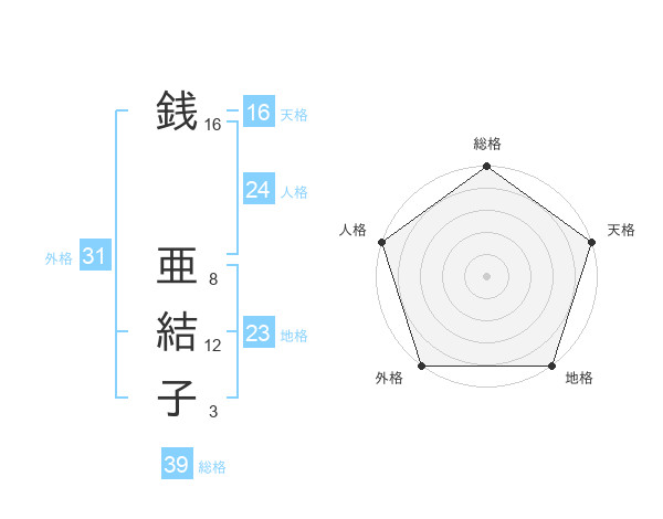 銭 亜結子さんの外格は31画の5点!