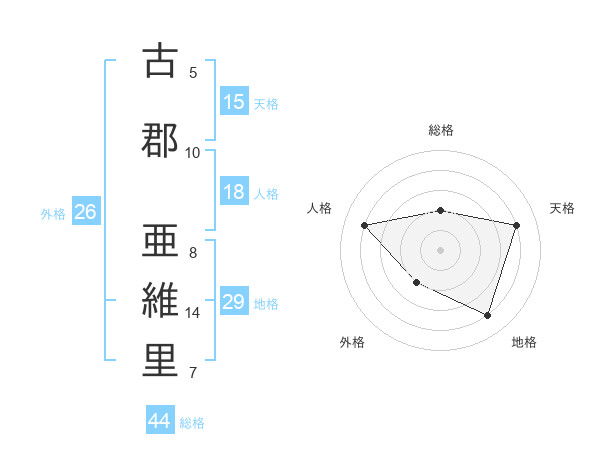 古郡 亜維里さんを姓名の画数から五運を鑑定