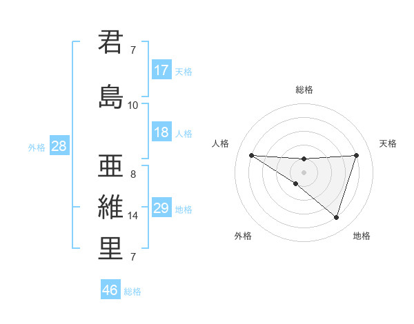 君島 亜維里さんを姓名の画数から五運を鑑定