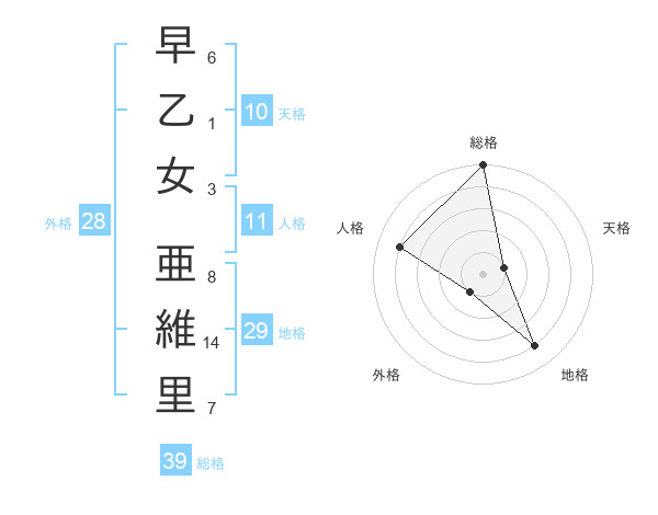 早乙女 亜維里さんを姓名の画数から五運を鑑定