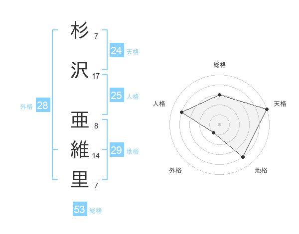 杉沢 亜維里さんを姓名の画数から五運を鑑定