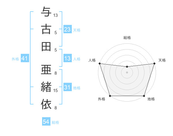 与古田 亜緒依さんを姓名の画数から五運を鑑定