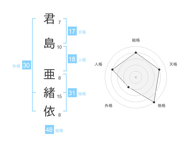 君島 亜緒依さんを姓名の画数から五運を鑑定