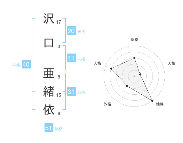 沢口 亜緒依さんを姓名の画数から五運を鑑定