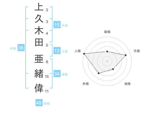 上久木田 亜緒偉さんを姓名の画数から五運を鑑定