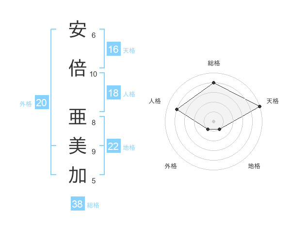 安倍 亜美加さんの地格は22画の1点!