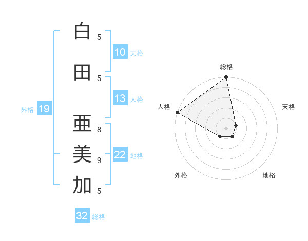 白田 亜美加さんを姓名の画数から五運を鑑定
