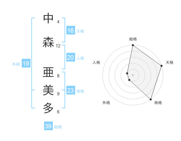 中森 亜美多さんの総格は39画の5点!