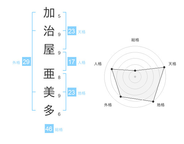 加治屋 亜美多さんを姓名の画数から五運を鑑定