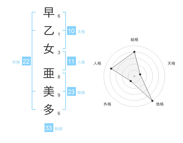 早乙女 亜美多さんを姓名の画数から五運を鑑定