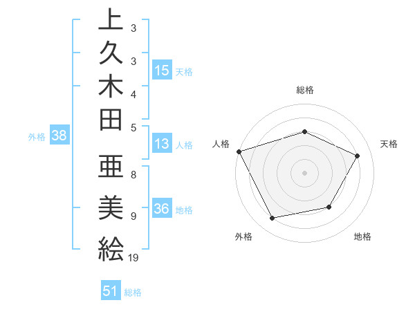 上久木田 亜美絵さんを姓名の画数から五運を鑑定