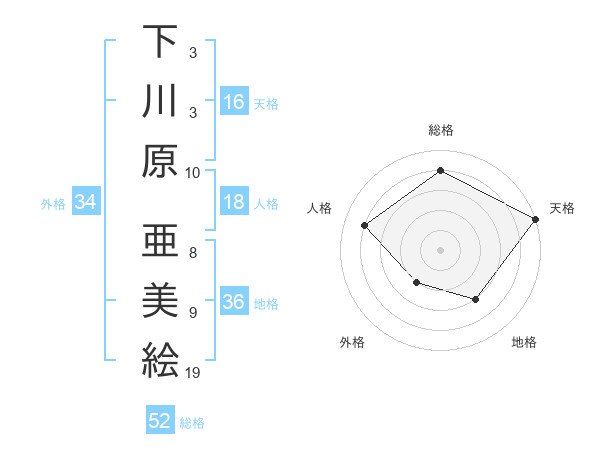 下川原 亜美絵さんを姓名の画数から五運を鑑定