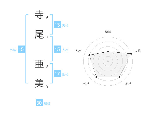 寺尾 亜美さんの総格は30画の2点!