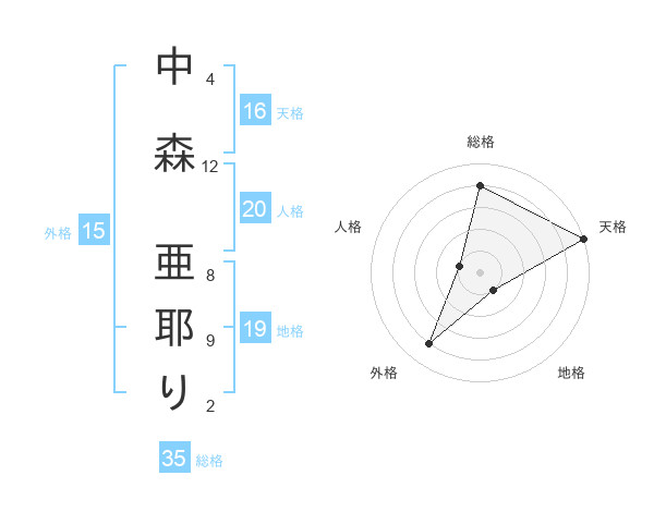 中森 亜耶りさんを姓名の画数から五運を鑑定