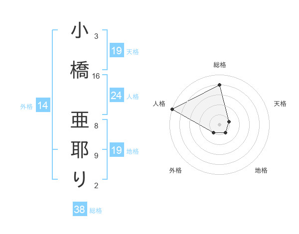 小橋 亜耶りさんを姓名の画数から五運を鑑定