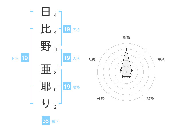 日比野 亜耶りさんを姓名の画数から五運を鑑定