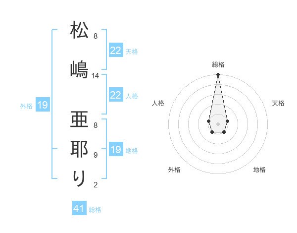 松嶋 亜耶りさんを姓名の画数から五運を鑑定