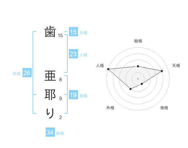 歯 亜耶りさんを姓名の画数から五運を鑑定