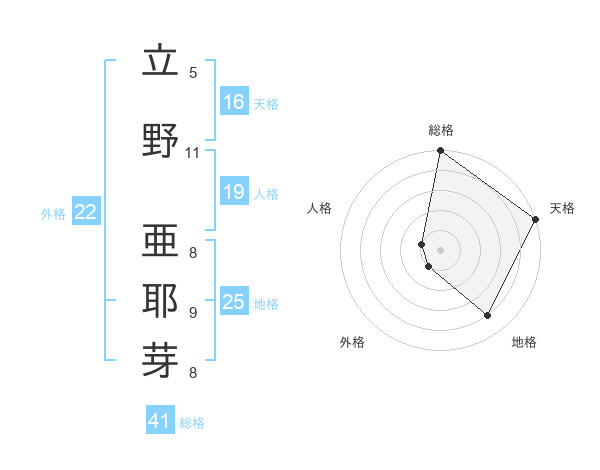 立野 亜耶芽さんの総格は41画の5点!